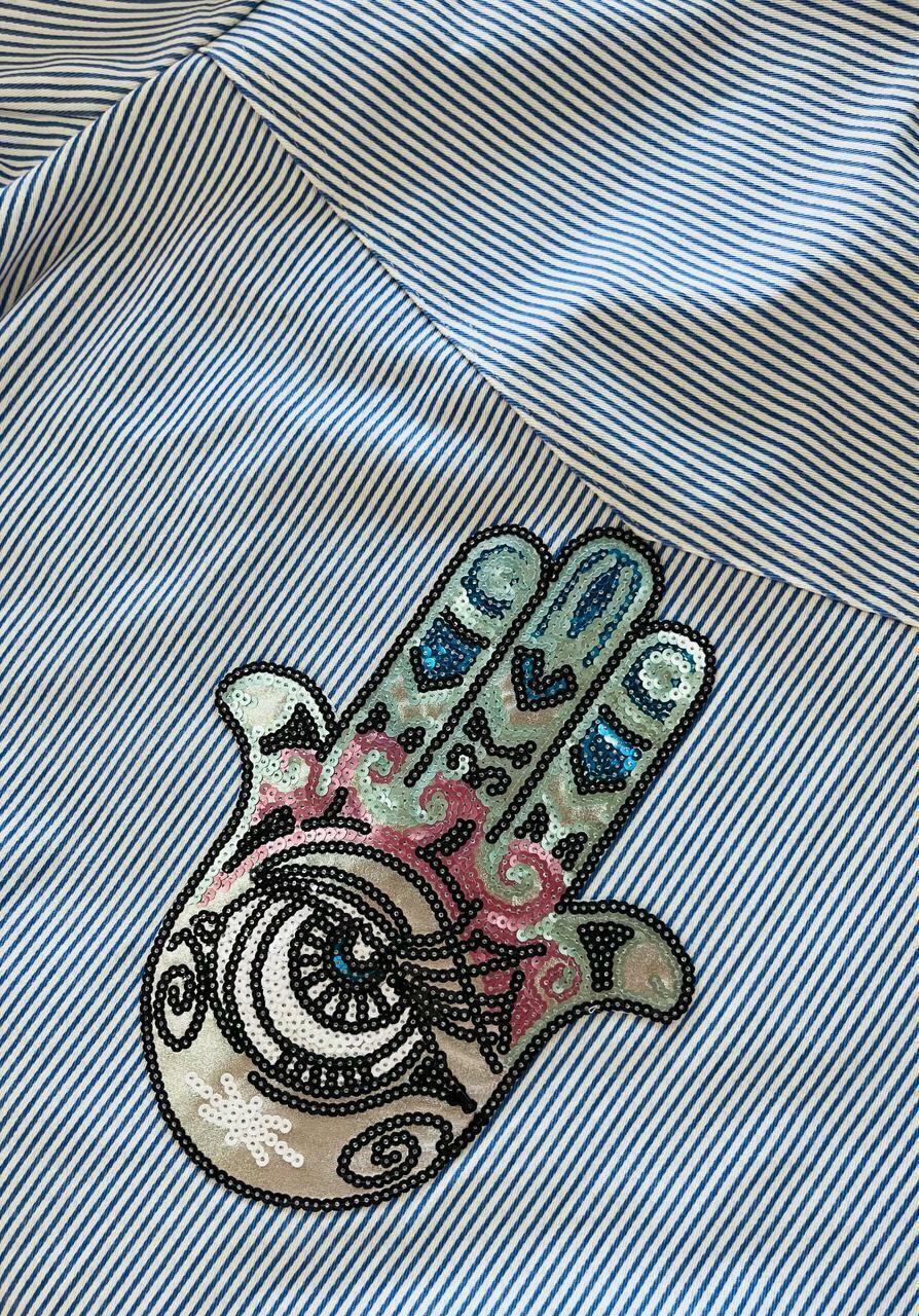 Camisado rayado, de tela gabardina elastizada, con bolsillos en la parte de adelante y estampa en la espalda ¡Para lucir un look canchero y a la moda!